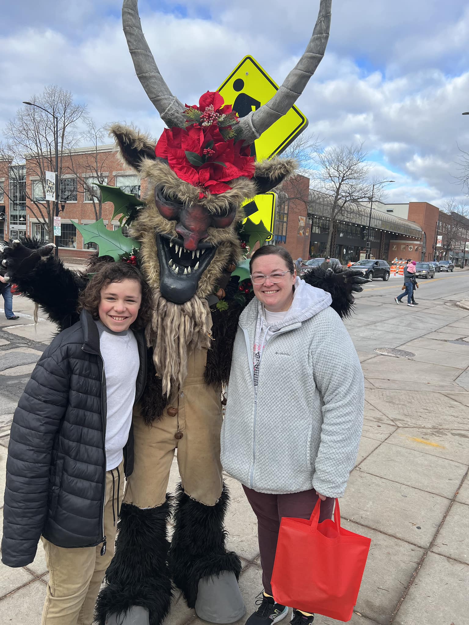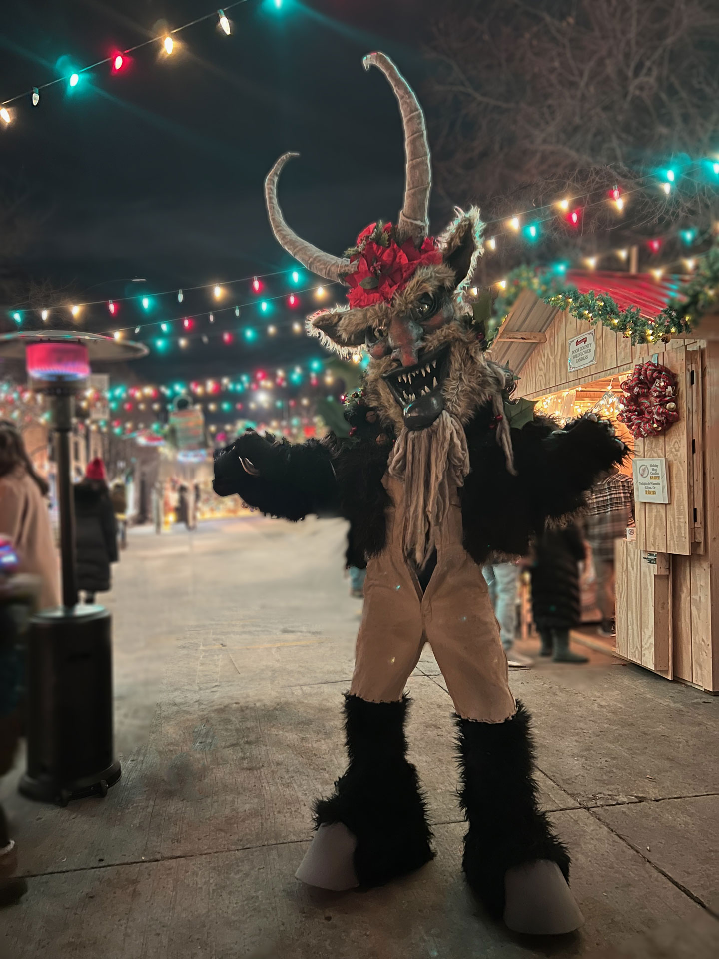 The Krampus of Yonder arrived at Green Bay’s Christkindlmarkt on December 1st at 5:30 p.m., heralded by the sound of jingling bells and ominous hoof clomps. As the creature emerged from the shadowy alleyway, cloaked in a thick, tattered lederhosen and adorned with a mask of twisted horns and a menacing grin, the crowd of festive gazers gasped in both delight and apprehension. The air grew colder, as if the very presence of Krampus brought a chill that seeped through the layers of warm clothing and blankets.