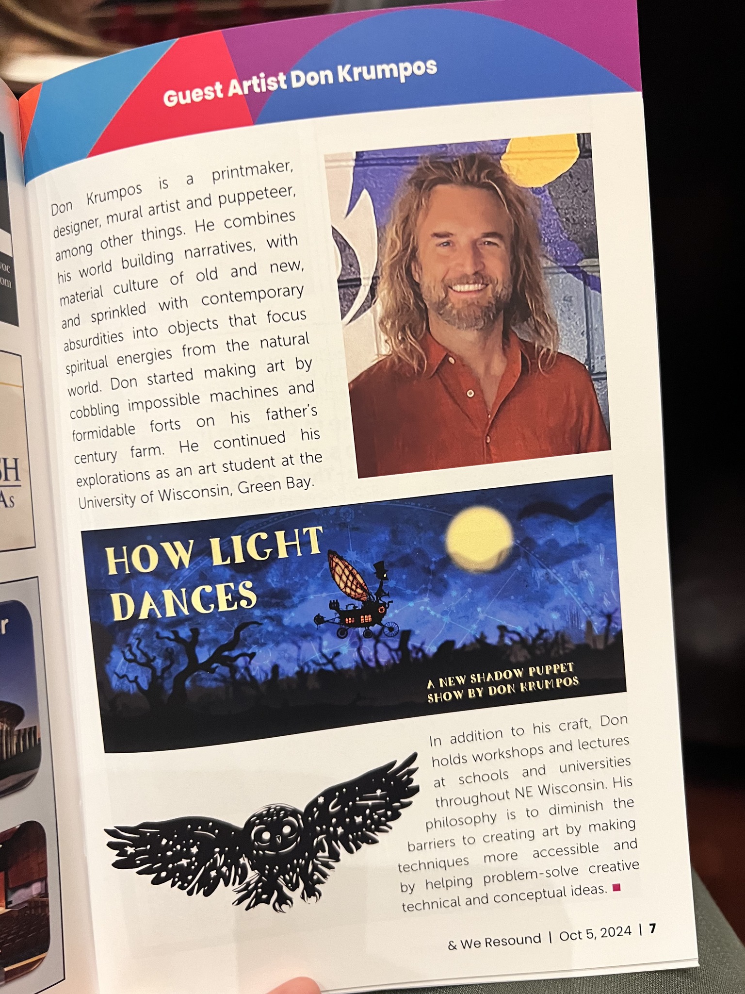 Dylan Chmura-Moore of the Manitowoc Symphony Orchestra approached me with an exciting challenge: to create distinctive visuals for their highly anticipated season opener on October 5th, 2024. After brainstorming together, we landed on the idea of a shadow puppetry-inspired film, an evocative medium that would seamlessly intertwine with the symphony’s live performance. The concept was ambitious, blending the timeless art of shadow play with the dynamic power of orchestral music.