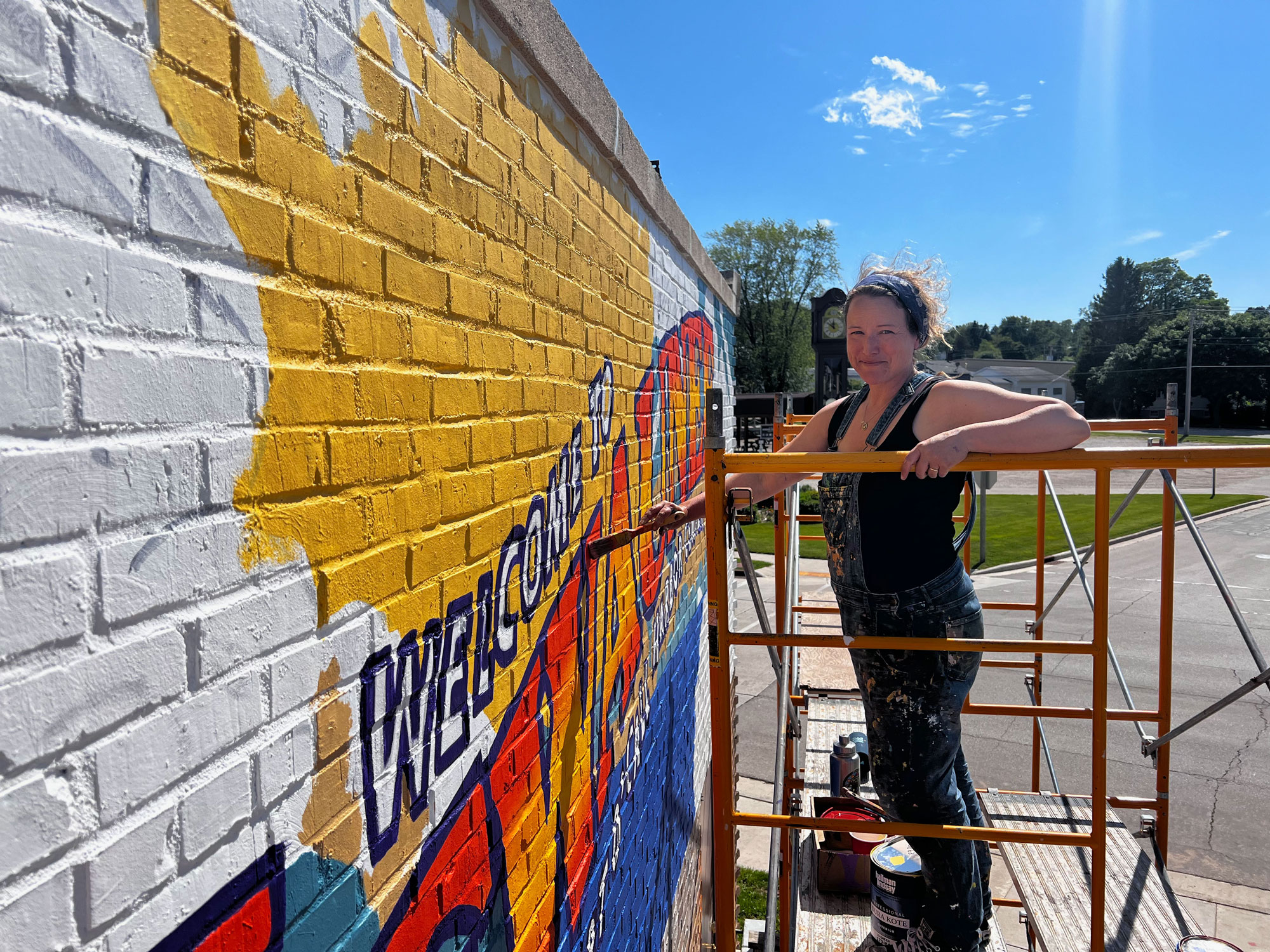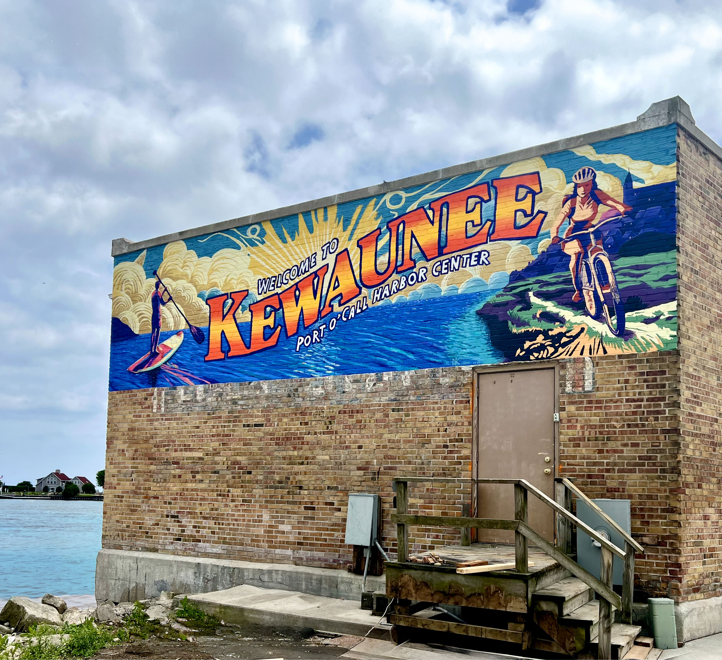 Incorporating elements of local history, the mural pays homage to Kewaunee’s nostalgic feel while looking toward the future. The color palette is warm and inviting, reminiscent of vintage travel posters, invoking a sense of timeless adventure and community spirit.