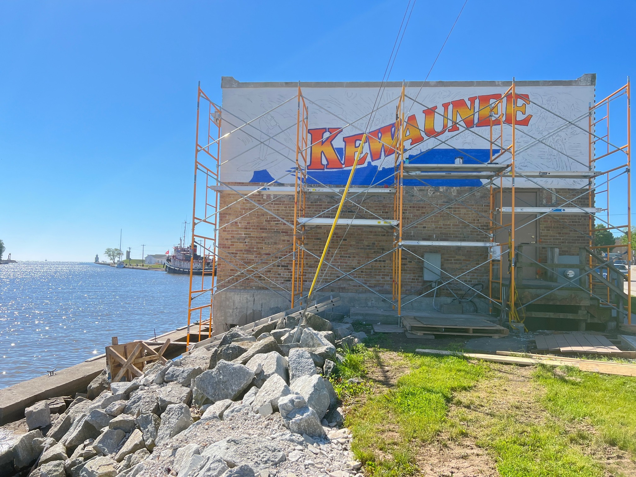 The City of Kewaunee’s Port O’Call had recently been purchased by a new owner with a vision for revitalization. Alongside extensive renovations, he aimed to capture the essence of Kewaunee’s rich heritage and vibrant future. To achieve this, he commissioned a new mural to adorn the side of his building, designed to evoke a sense of nostalgia and charm.