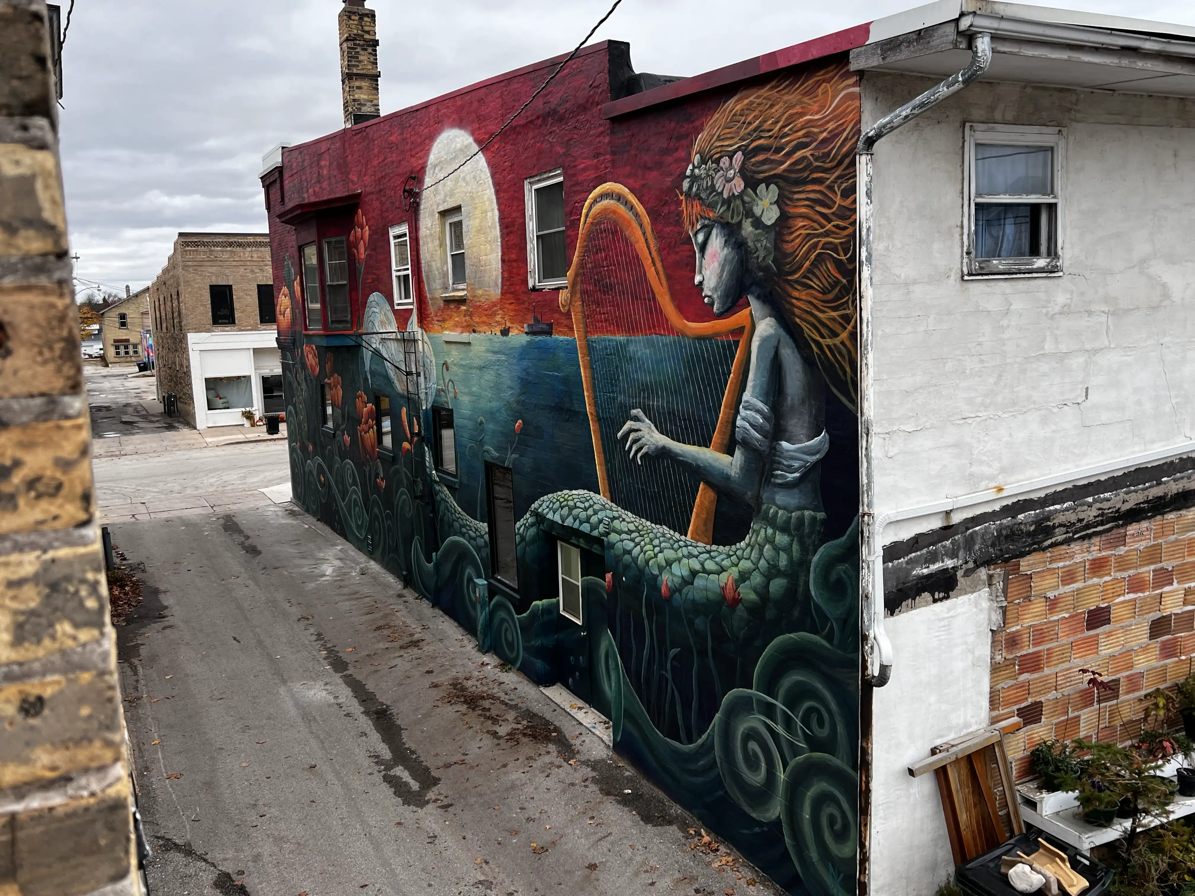 Commissioned by the City of Algoma, the work transforms an urban alley into a narrative canvas, one that reflects the local history of fishing and the delicate balance between livelihood and environmental stewardship. It also raises questions about the power of public art to forge connections—between past and present, between art and audience.