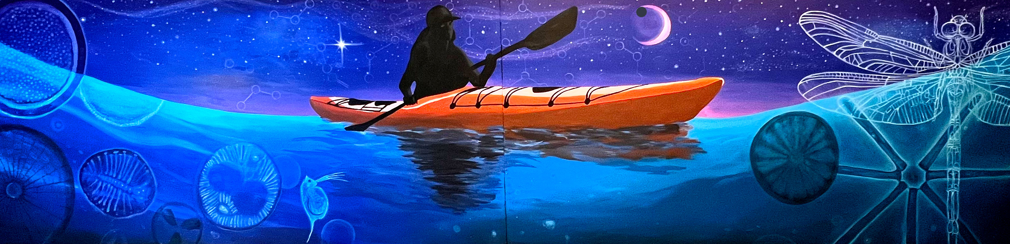 Collaborating closely with Jody Henseler, a respected local teacher, friend, paddler and fellow artist, the artists aimed to create a mural that not only celebrated the organization’s legacy but also highlighted the beauty and importance of Lake Michigan. Jody’s extensive scientific knowledge and deep passion for the water played a crucial role in shaping the mural’s design.