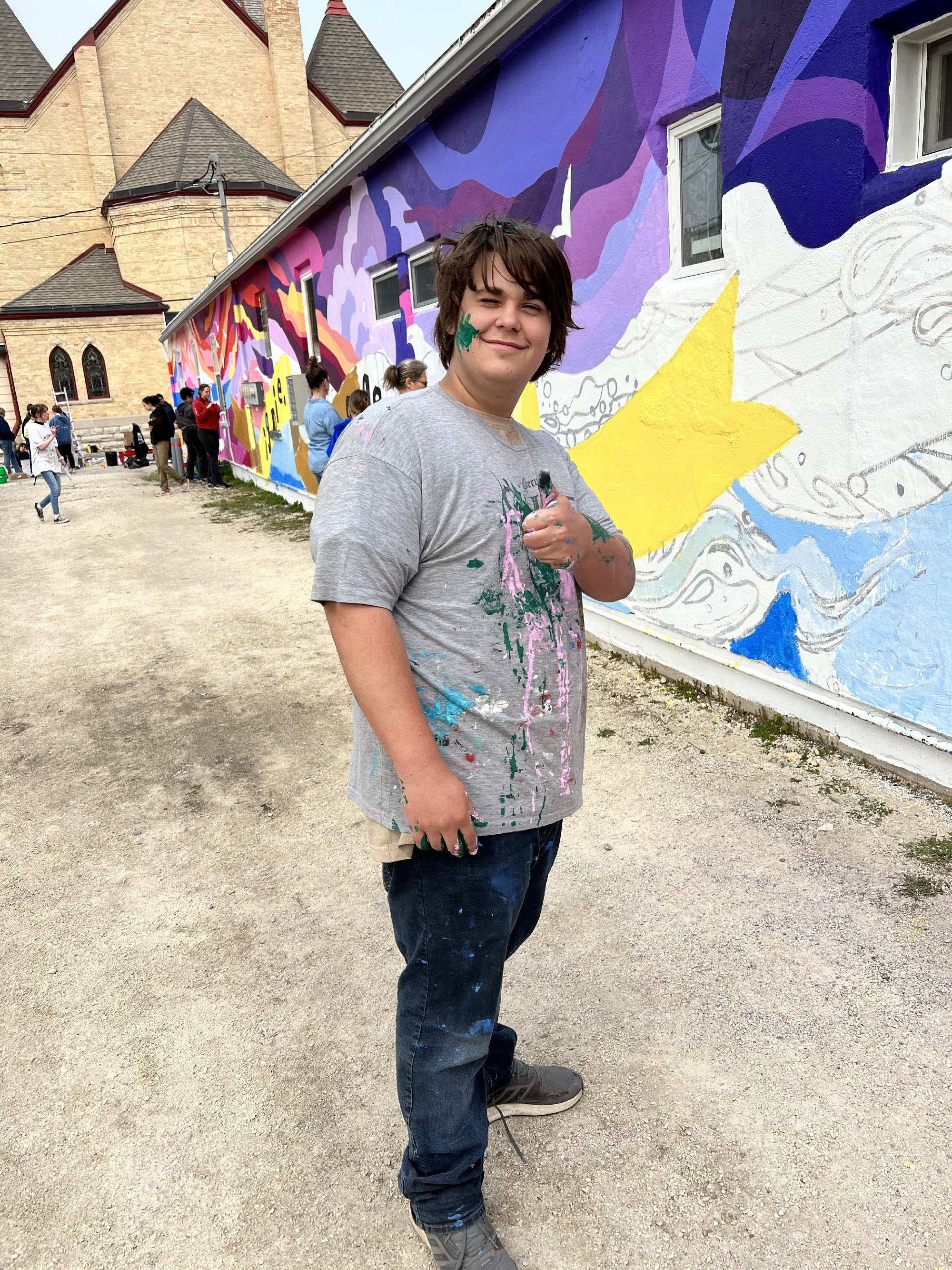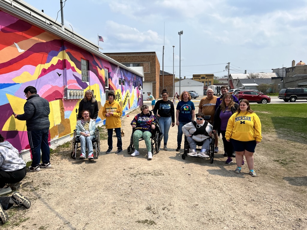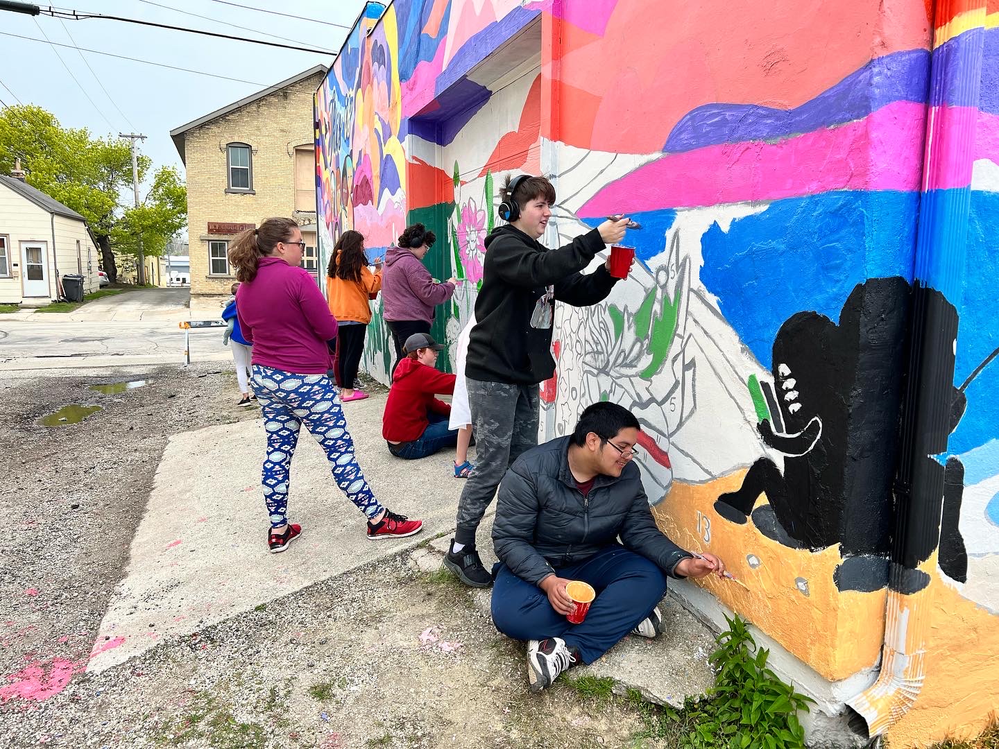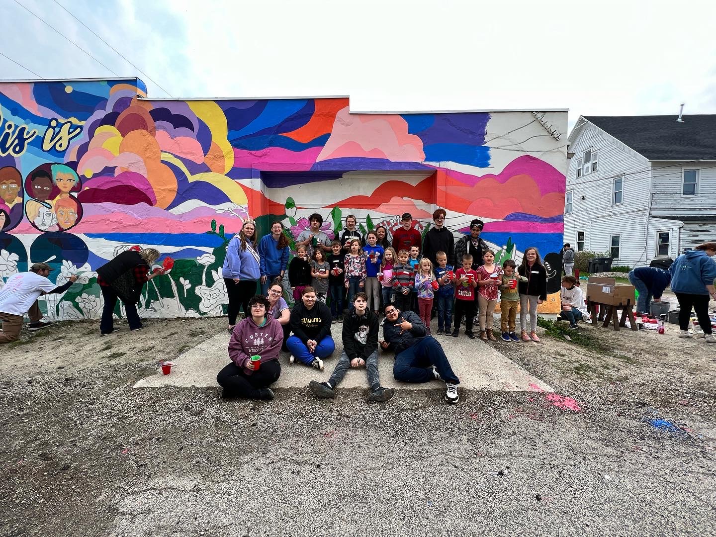 A group of enthusiastic students from The Algoma Venture Academy, a vibrant public charter school, approached Yonder with an inspiring idea: to have us teach a mural class, culminating in a community-painted wall in our city. Throughout the crisp winter months, we embarked on this creative journey together. The eight talented students collaborated passionately, brainstorming and sketching to design a mural that would reflect the spirit and unity of our community.