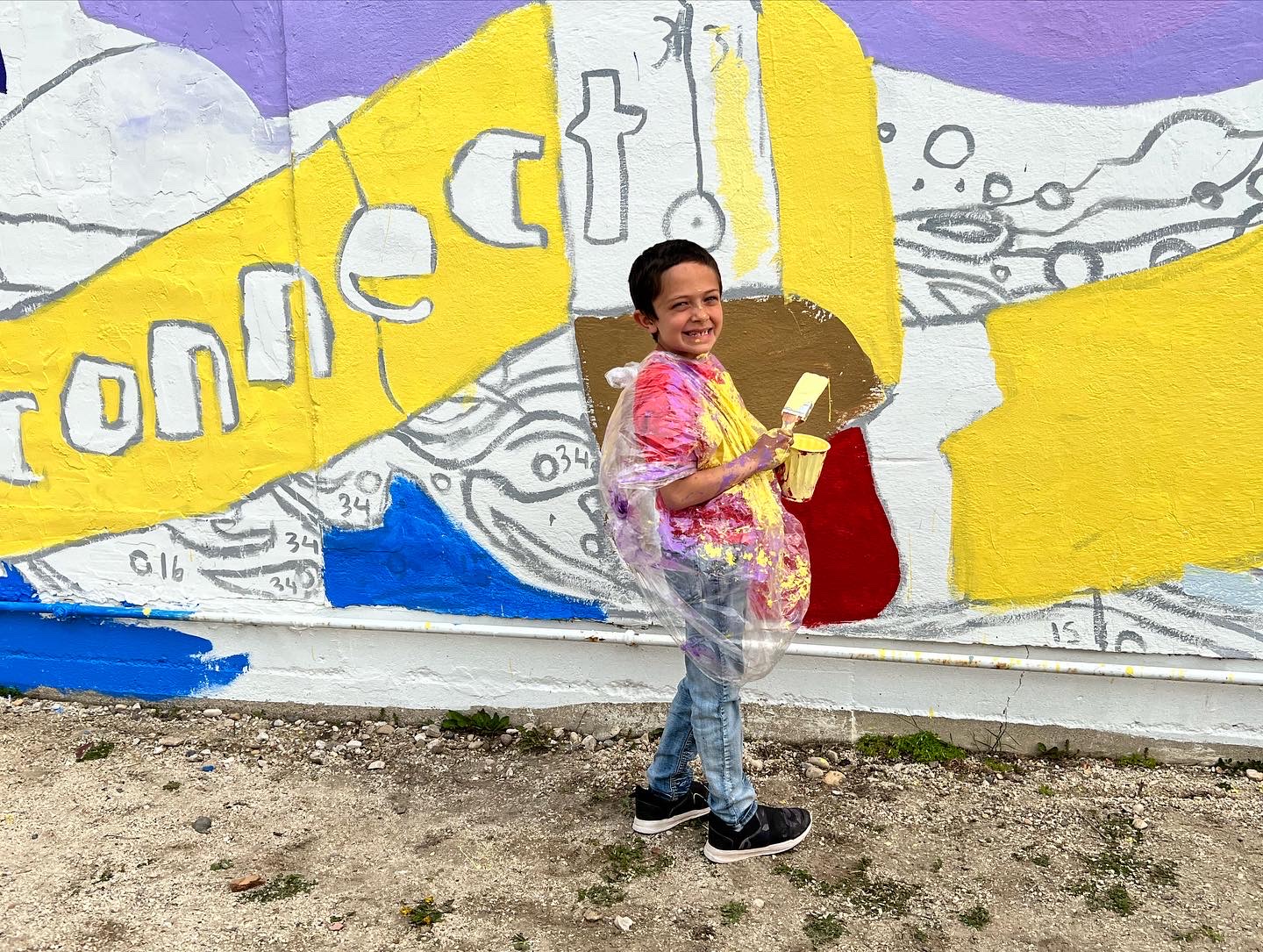 As the first blossoms of spring hinted at the arrival of warmer days, we began the next exciting phase: painting the mural. The chosen wall, nestled in the alley just behind Yonder’s studio, became our canvas. Armed with brushes and an array of bright paints, the students started bringing their design to life. The wall gradually transformed, each stroke adding depth and vibrancy to the unfolding masterpiece.