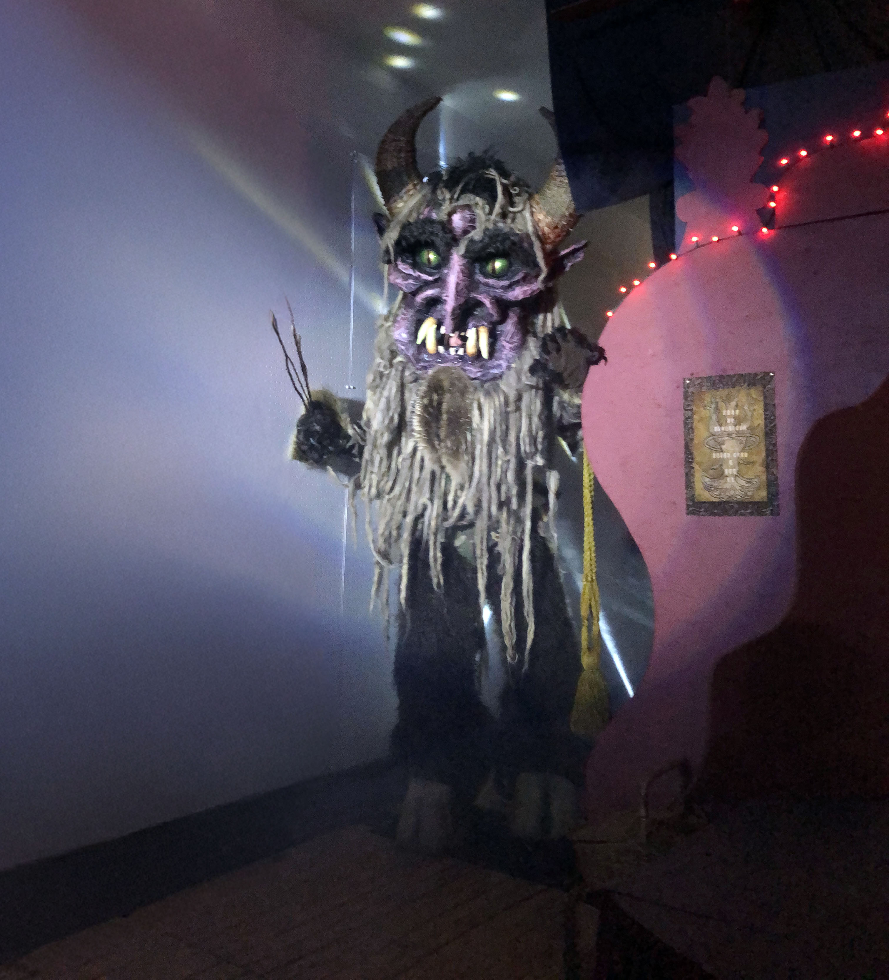 Descent into the Icy Abyss – The Krampus Lair Through a hidden passage, a mischievous nymph—her eyes alight with knowing mischief—beckoned guests downward into a frozen cavern beneath the building. Within, a looming, spectral Krampus (voiced and animated by co-collaborator Joel Zwicky) hovered behind a veil, a phantom visage brought to life through clever trickery and shadowed sorcery. His guttural voice and twitching snout searched the air, sniffing out each guest’s true nature. If one was deemed virtuous, a henchman branded their cheeks with rosy warmth—a mark of purity and elfish grace. But should a soul be found wicked, a sooty mark of coal was pressed upon their brow, sealing their shadowy misdeeds for all to see. Guests emerged, eyeing one another’s markings in gleeful confusion—what did it all mean?